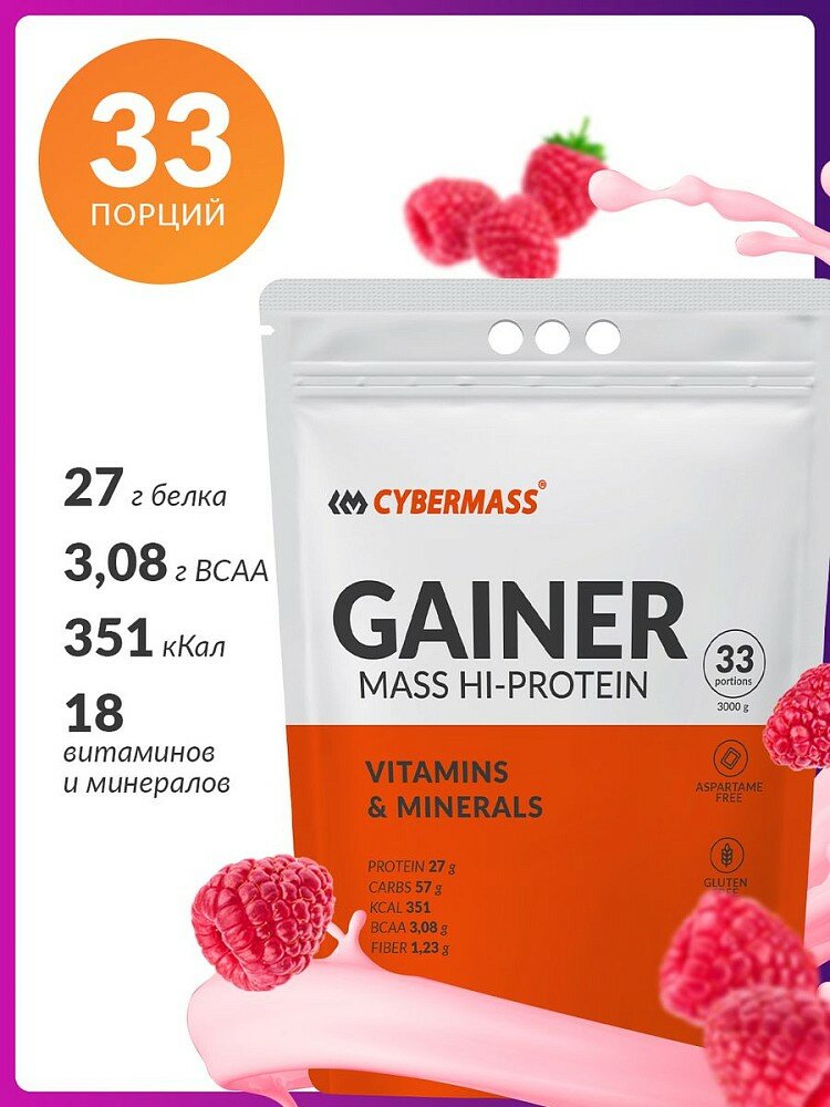 Гейнер для набора мышечной массы CYBERMASS Gainer, Малина, 3000 г