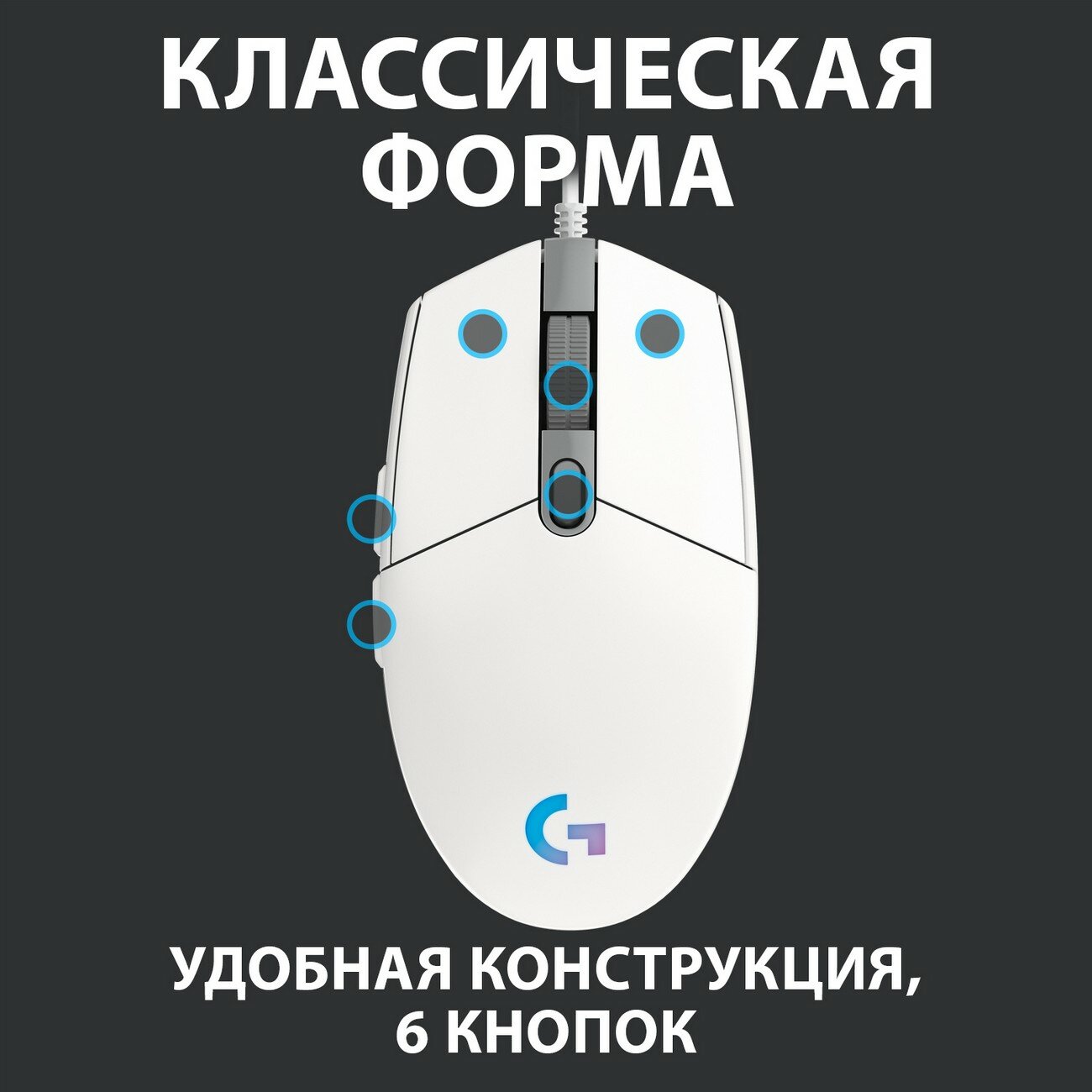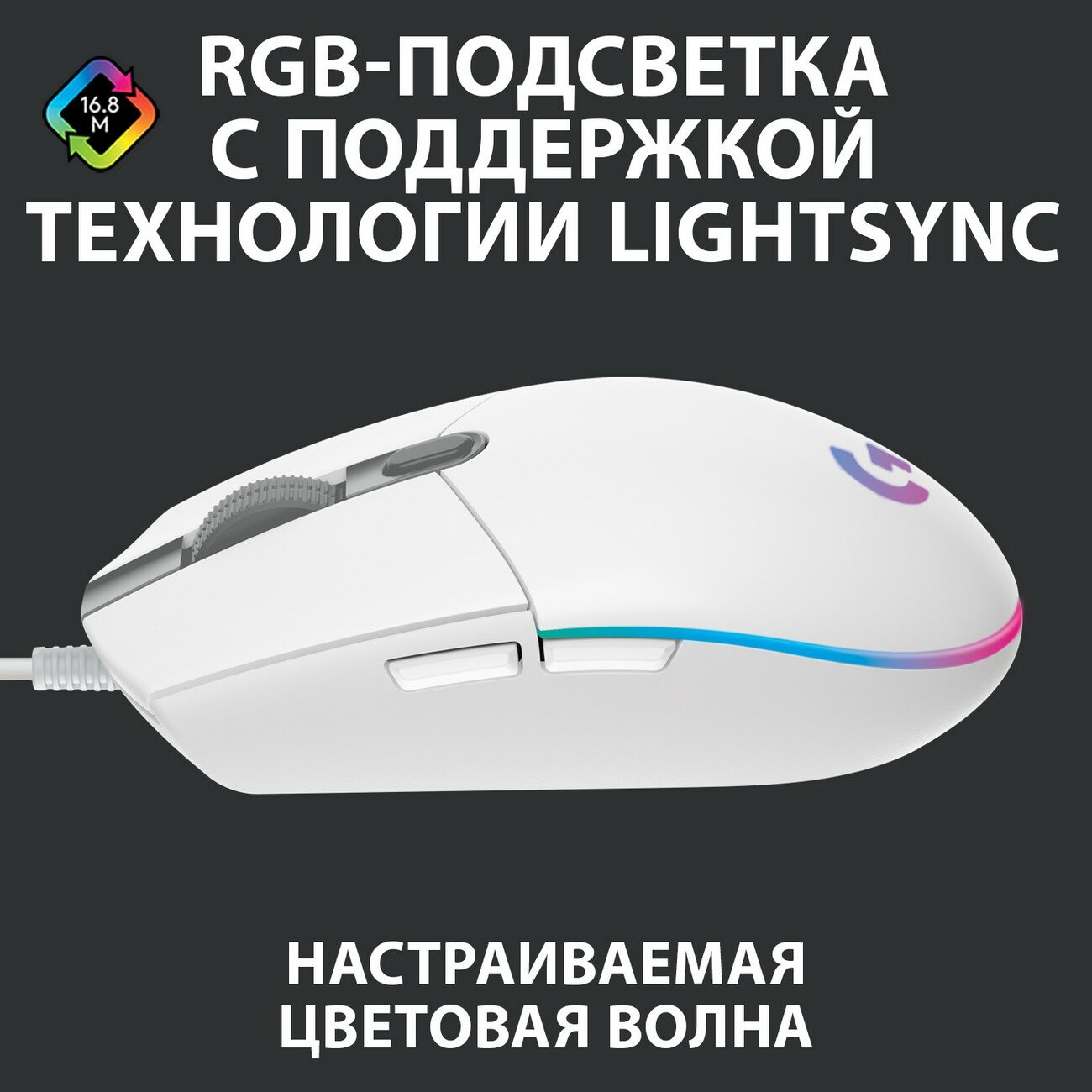 Мышь Logitech G102 LightSync белый оптическая (8000dpi) USB 5 кнопок