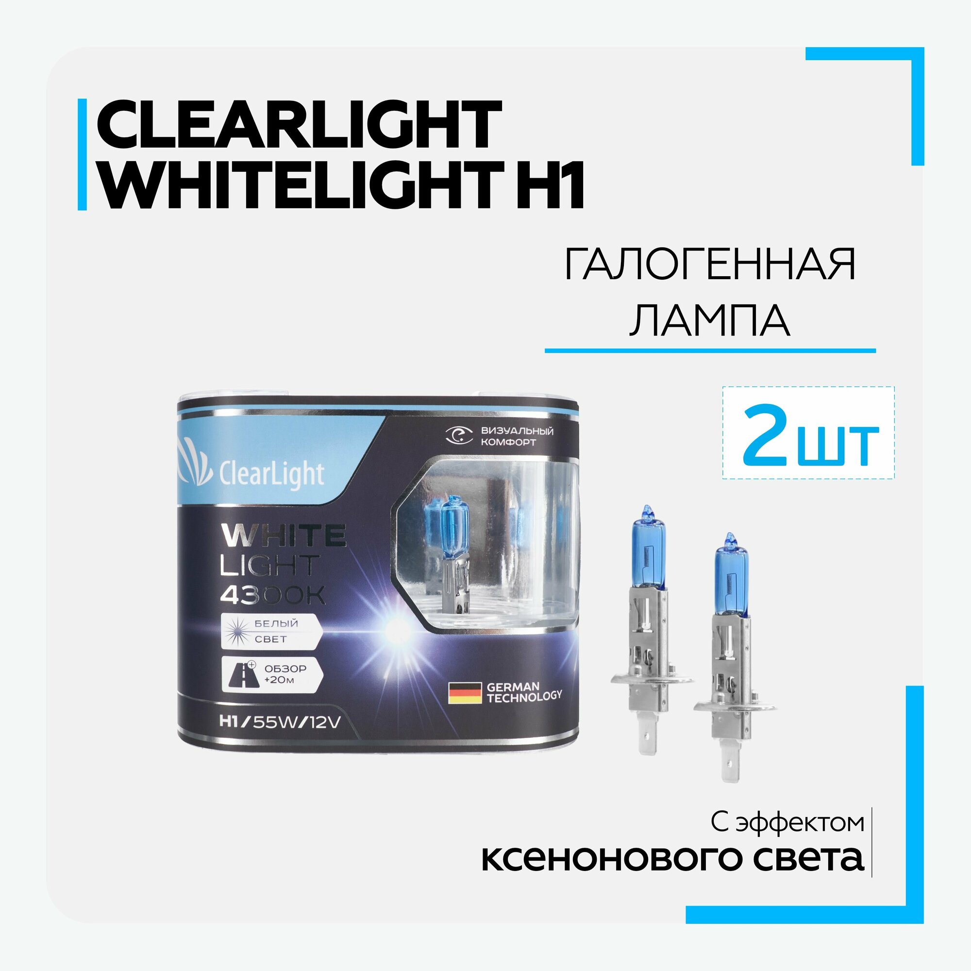 CLEARLIGHT MLH1WL Лампа 12V H1 55W P14,5s 4300K ClearLight WhiteLight 2 шт. DUOBOX MLH1WL