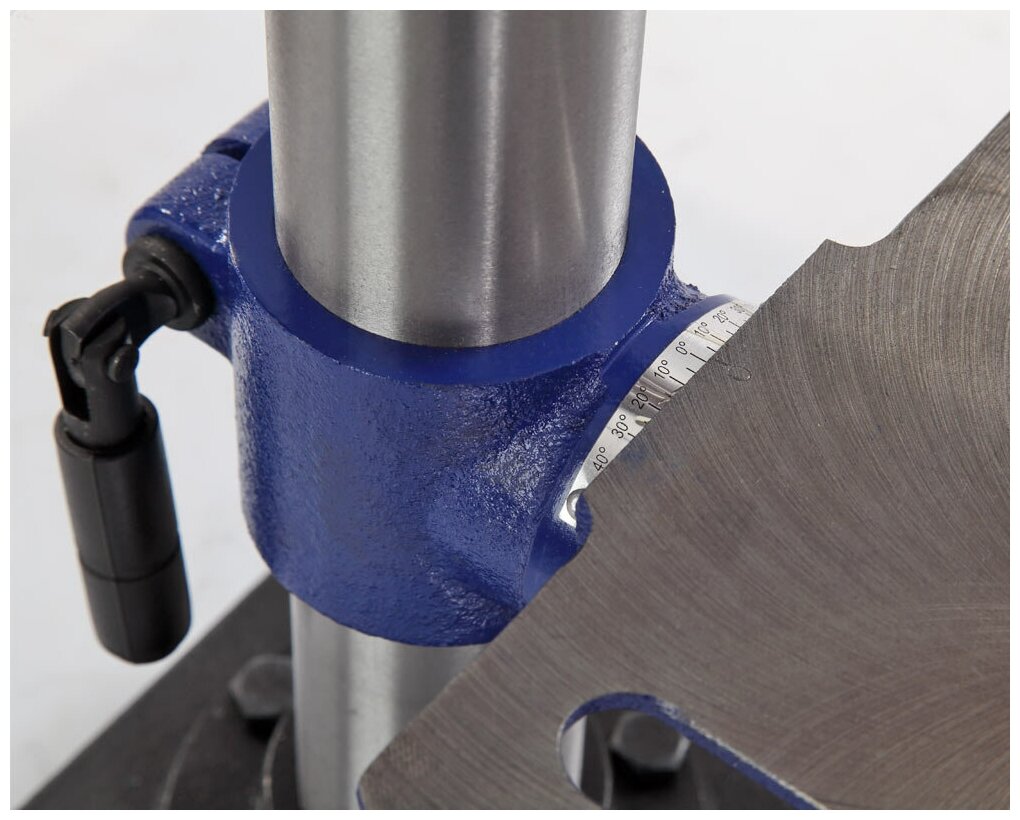 Лучшие цены. Патрон ключевой с зажимаемым диаметром хвостовика инструмента 1,5÷13 мм. Посадка патрона B16. Конус шпинделя КМ2. Диаметр стойки (колонны) 48 мм. На ней фиксируется стол с помощью зажима. Все управление осуществляется двумя кнопками – «пуск» и «остановка». В опоре имеется два отверстия для крепления к верстаку, что дает дополнительную безопасность. Модель подходит для небольшой мастерской. Магазины в вашем городе.