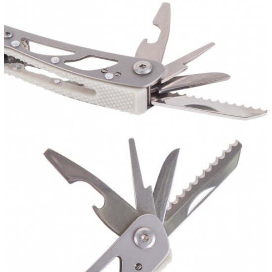 | Функции и возможности | консервный нож, открывалка для бутылок, дополнительное лезвие, крестовая отвертка, шлицевая отвертка, пилка, плоскогубцы, кусачки |