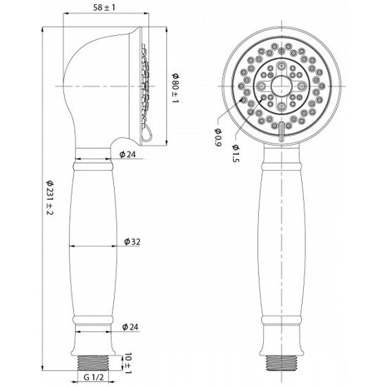 | Размеры ручного душа | 80 мм |