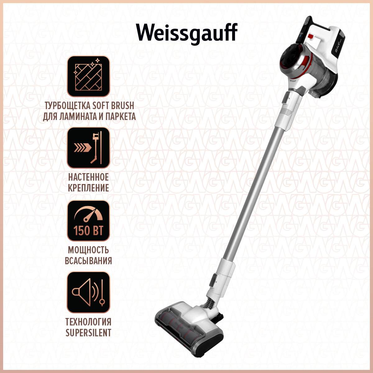 Пылесосы Вертикальный пылесос Weissgauff V9 Turbo Cyclone Soft Brush белый