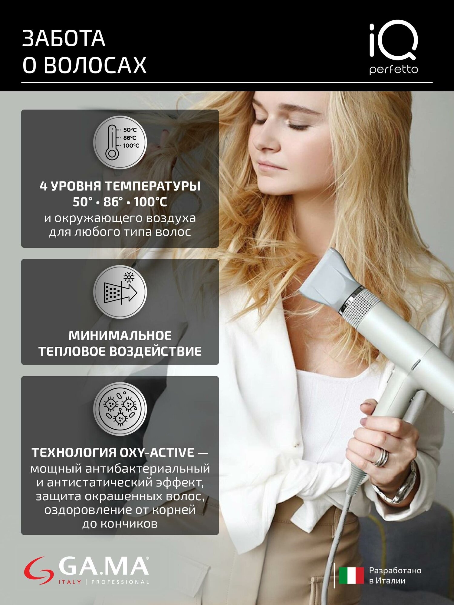 Фен для волос / Фен для волос с насадками / Профессиональный / Для сушки и укладки / Стайлер/ Мультистайлер GA.MA IQ PERFETTO