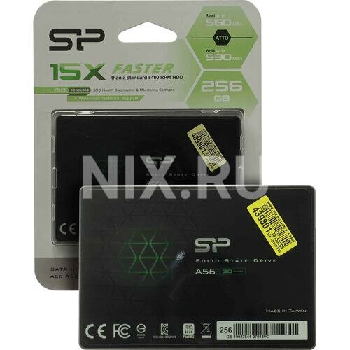 Твердотельный накопитель Silicon Power A56 SP256GBSS3A56B25 SSD, 2.5", 256GB, SATA-III, чтение: 460 Мб/сек, запись: 430 Мб/сек, 3D NAND, TRIM, NCQ, ECC