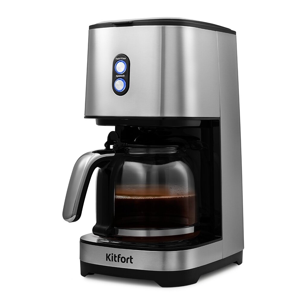 Лучшие цены. Капельная кофеварка Кіtfort КТ-750 поможет приготовить ароматный кофе из молотого кофе. Она компактная, управляется всего 2 кнопками и идеально подойдёт для приготовления кофе в домашних условиях или в офисе. По окончании приготовления кофеварка автоматически перейдёт в режим подогрева. Платформа, на которой стоит кофейник с готовым кофе, будет горячей в течение 40 минут, затем кофеварка выключится. Магазины в вашем городе.