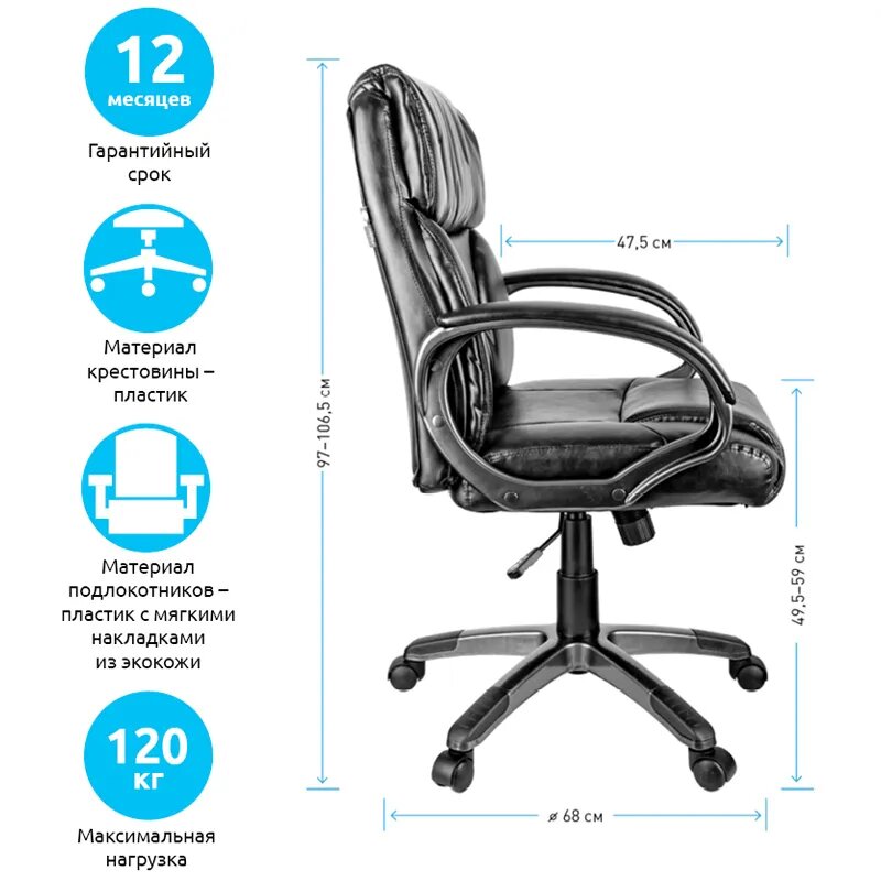 Кресло руководителя Helmi HL-E08 "Receipt", экокожа черная 274833