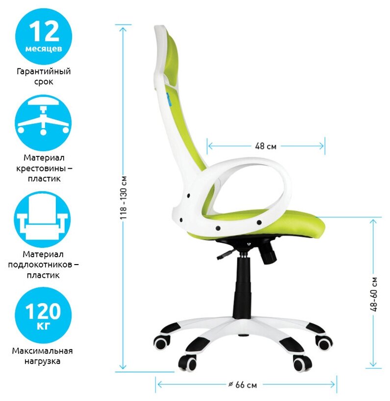 Кресло игровое Helmi HL-S05 "Podium", ткань сетка, салатовая, пластик белый (311369)