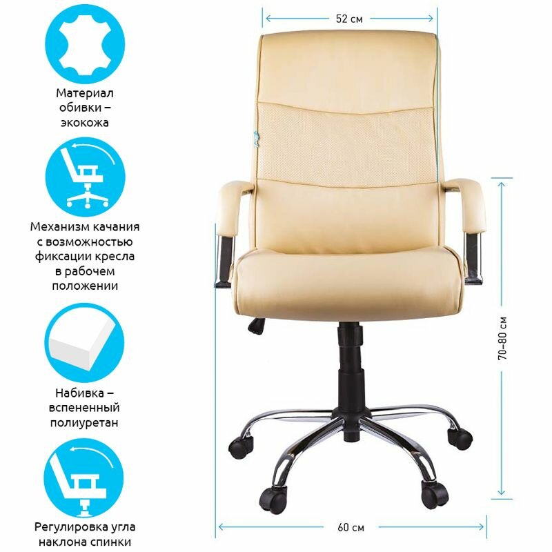 Кресло руководителя Helmi HL-E03 Accept хром, экокожа бежевая