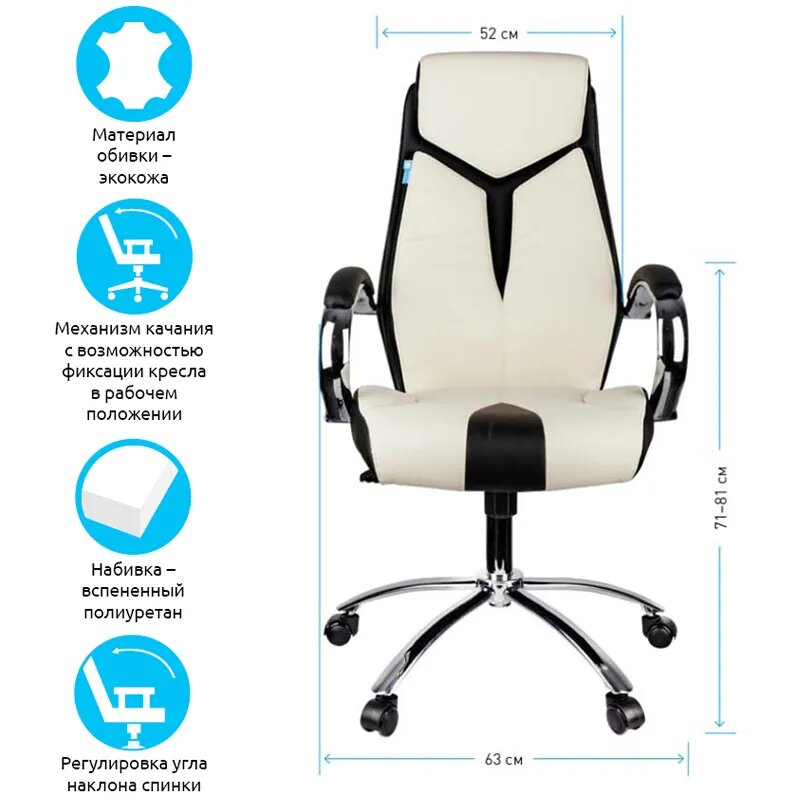 Кресло руководителя Helmi HL-E01 Inari, экокожа черная/бежевая, хром 18 349 ₽ Подробнее