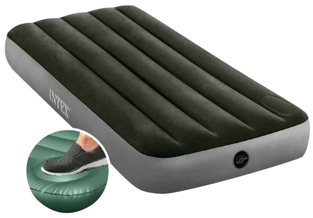 Intex Кровать надувная Downy Bed, (fiber-tech), встроенный ножной насос, 76x191x25см, Пвх, 64760 108 .