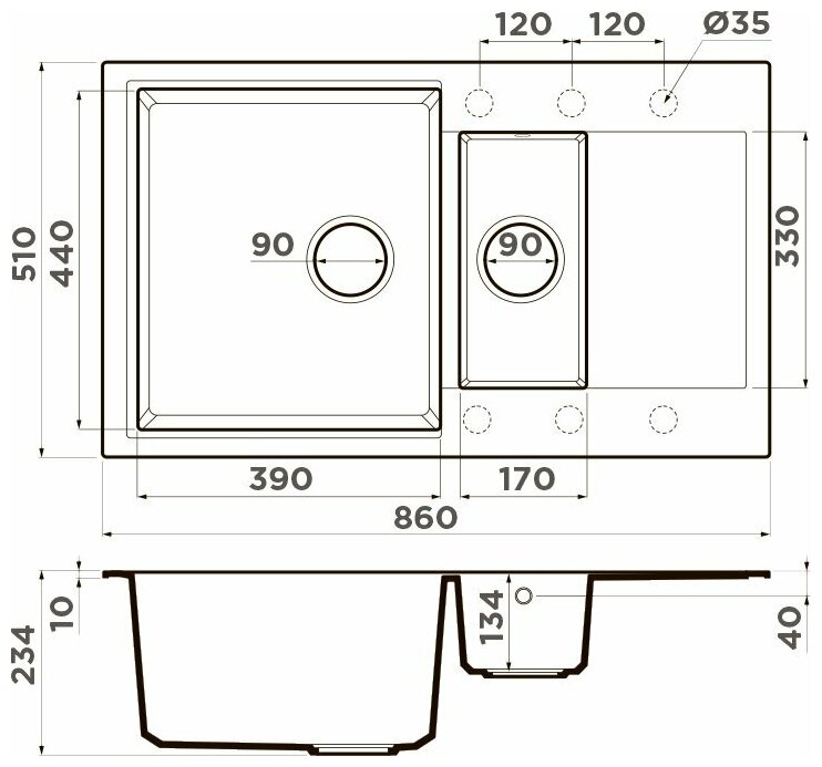 | Размеры доп. чаши (ДхШхГ) | 170x330x130 мм |