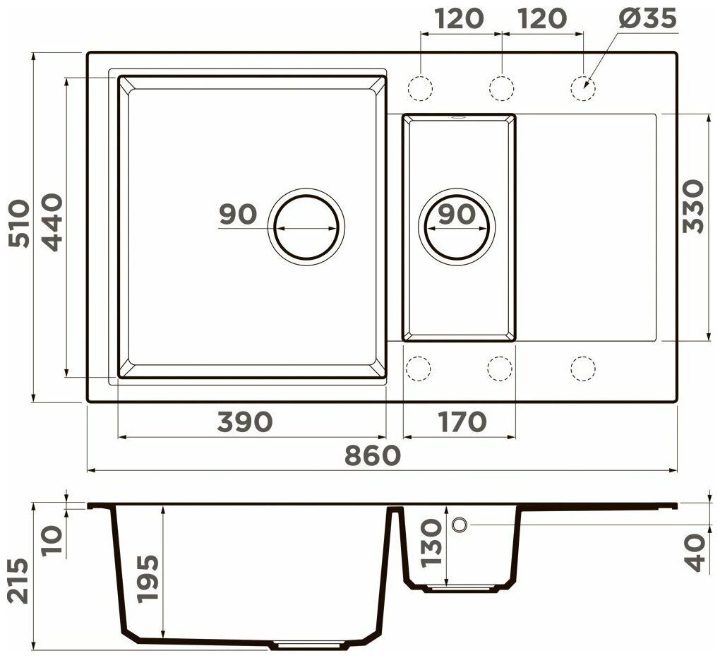 Кухонная мойка Omoikiri Daisen 86-2-BL, две чаши, оборачиваемая, Artgranit, чёрный 4993477 27 688 ₽ Подробнее
