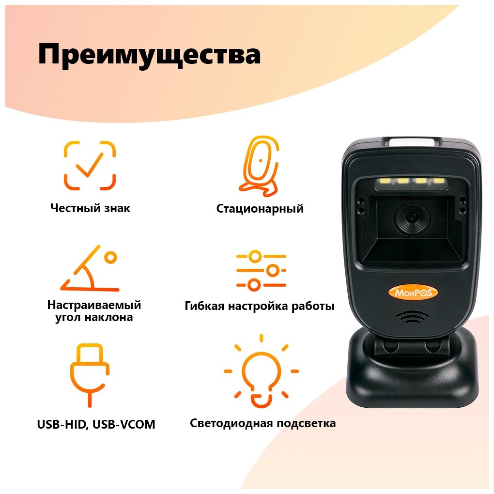 Сканер штрих кода проводной стационарный МойPOS MSC-6608C 2D для маркировки товаров и ЕГАИС USB