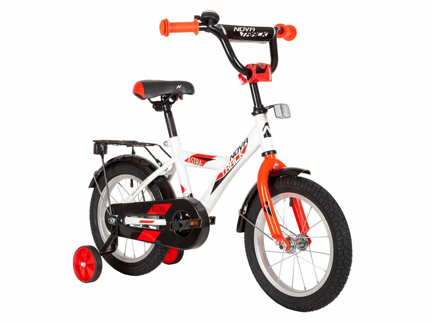 Велосипед NOVATRACK 14" ASTRA белый, тормоз нож, крылья, багажник, полная защ.цепи