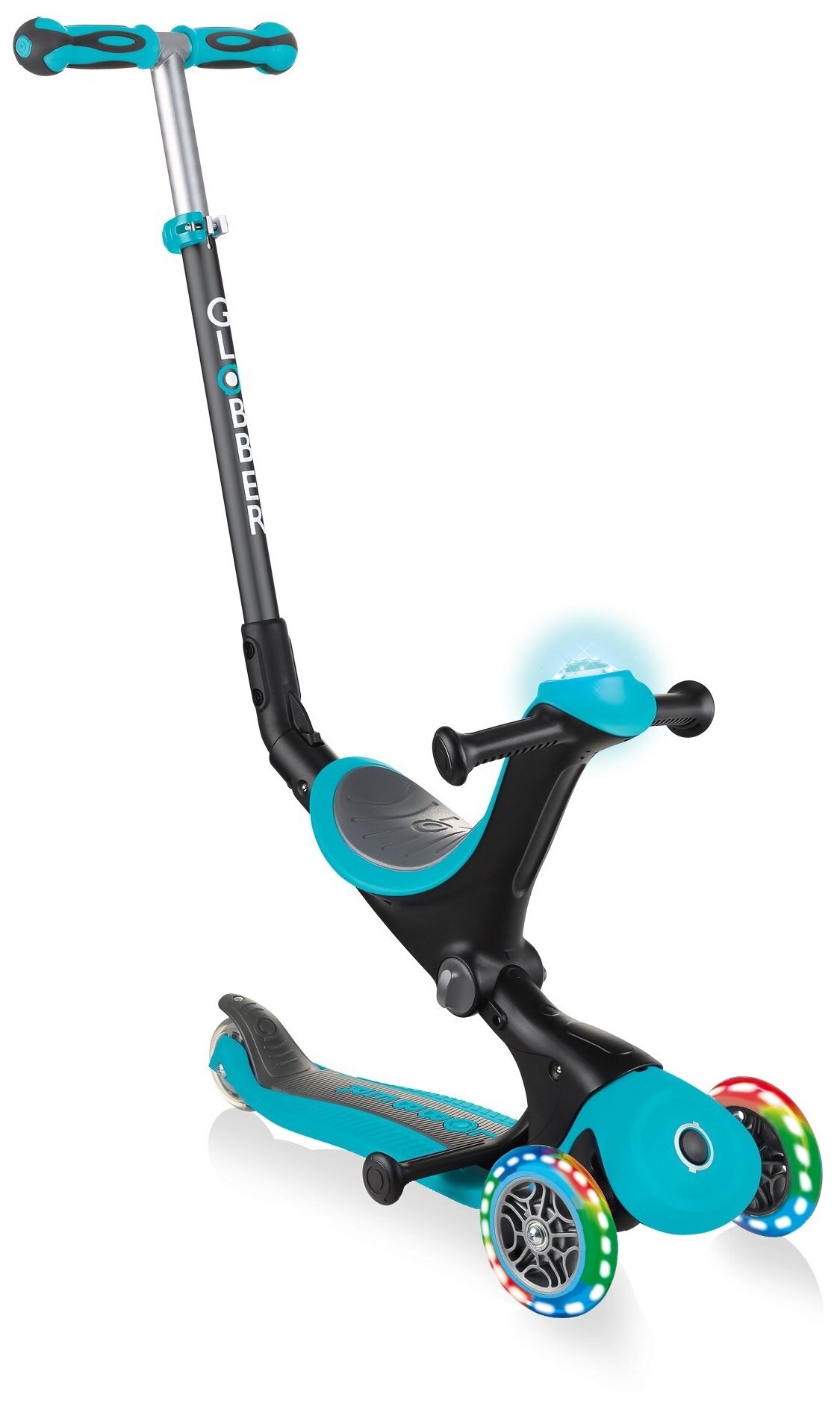 Самокат Детский 3-колесный самокат-беговел GLOBBER Go Up Deluxe Play Lights, бирюзовый