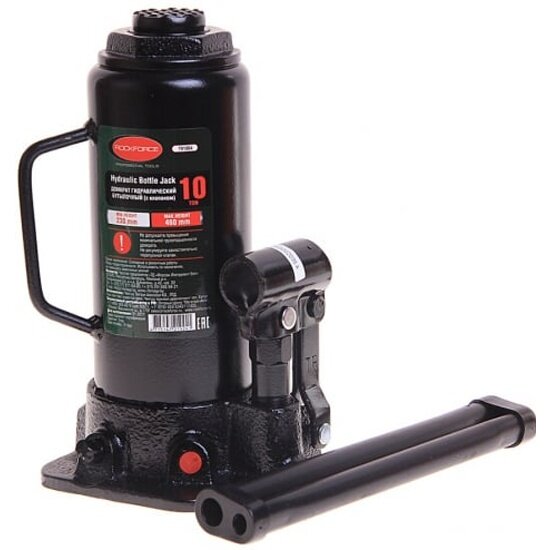 Домкрат гидравлический ROCKFORCE RF-T91004 бутылочный с клапаном 10т (высота подъема 190-360мм)