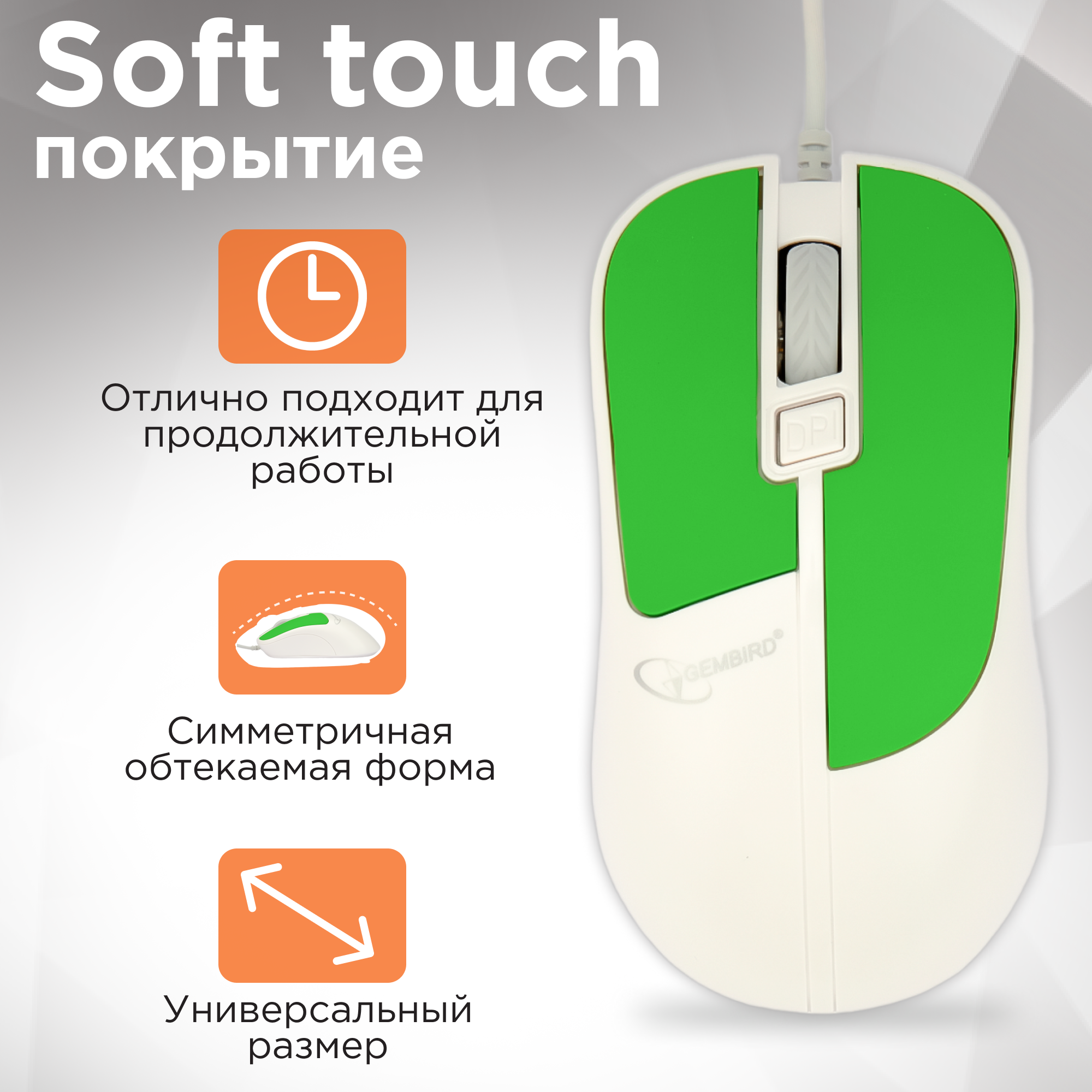Мышь Gembird MOP-410-GRN, USB, зелёный, 3 кнопки+колесо кнопка, soft touch, 1600 DPI, кабель 1.5м 756 ₽ Подробнее
