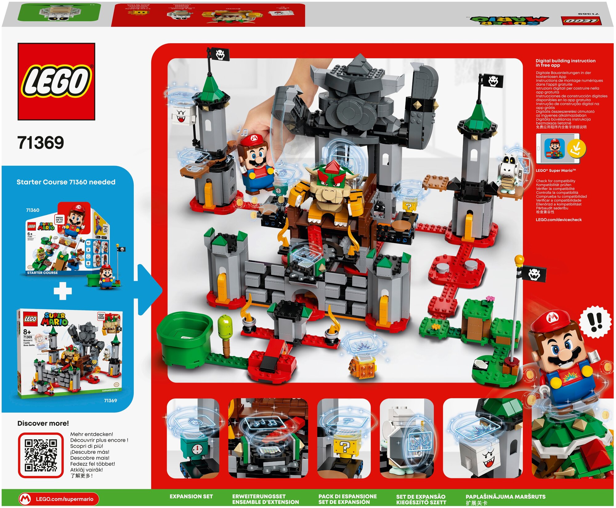 Лучшие цены. Детям понравится преодолевать летающие, дрожащие и качающиеся препятствия в дополнительном наборе «Решающая битва в замке Боузера» (71369). Эта модель замка, включающая в себя вращающиеся и дрожащие платформы, ворота, позволяющие поднять руки Боузера и добраться до блоков со знаком вопроса и блоков времени, раскачивающийся мост и фигурки Боузера, Бу, Купы-скелета и пузыри лавы, станет восхитительным подарком для детей, который они смогут добавить к стартовому набору LEGO® Super Mario (71360). Магазины в вашем городе.