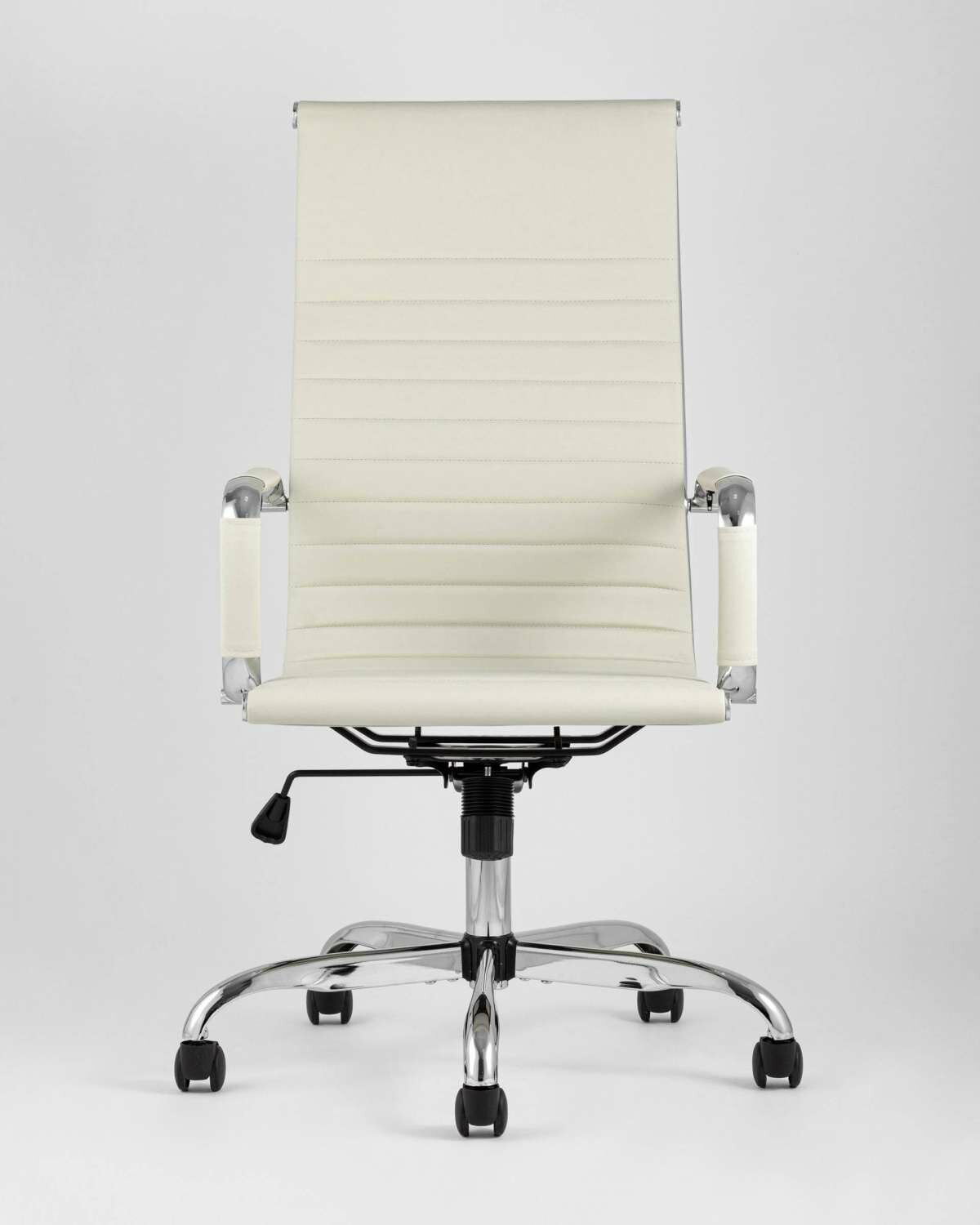 Лучшие цены. Кресло руководителя TopChairs City бежевое 52х66х98 Современное, компактное и функциональное офисное кресло TopChairs City имеет регулировку по высоте и механизм качания, а высокая эргономичная спинка позволяет равномерно распределить нагрузку.Сиденье и спинка кресла изготовлены из экокожи. Этот же материал используется для чехлов на подлокотниках. Крестовина и подлокотники выполнены из хромированного металла. Магазины в вашем городе.