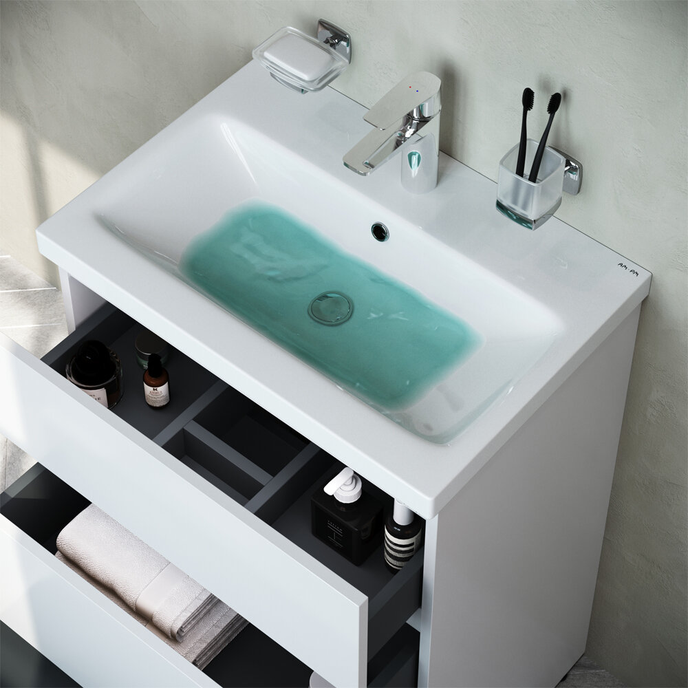 Тумба под раковину в ванную напольная AM.PM GEM S M91FSX0752WG 75 см, 3 ящика, белый глянец, нижний ящик можно использовать как выдвижную подставку для детей, тумбы под раковину, повышенная влагостойкость, Германия