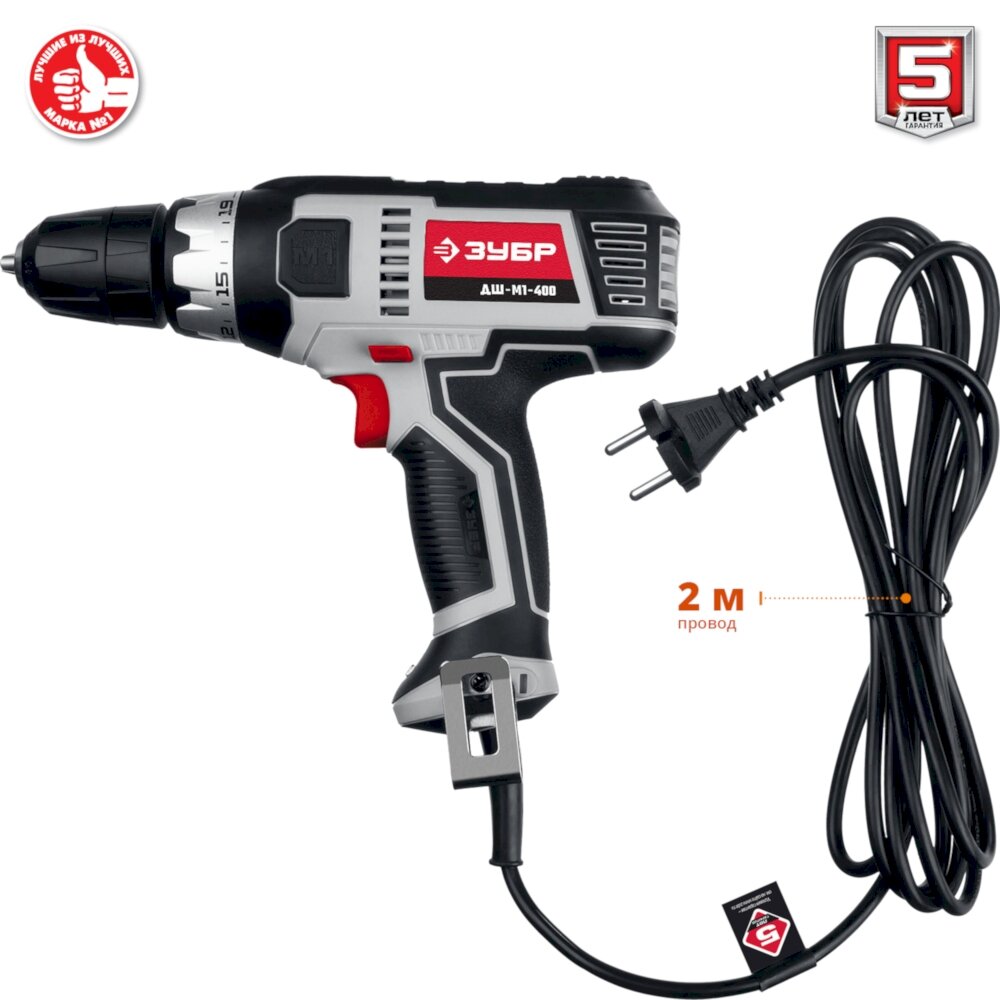 Дрель-шуруповерт электрический ЗУБР ДШ-М1-400 мастер