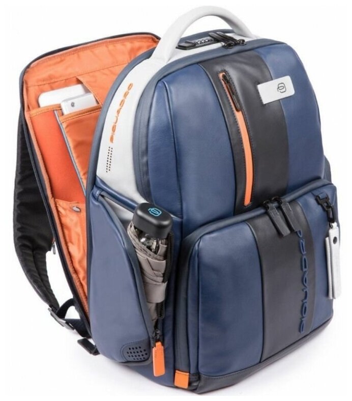 Лучшие цены. Кожаный бизнес-рюкзак из новой коллекции Piquadro Urban. Рюкзак изготовлен из мягкой телячьей кожи с использованием черненой металлической фурнитуры. Это флагманская модель рюкзака, здесь реализованы такие "фишки", как: кодовый замок на одном из отделений, датчик CONNEQU для отслеживания местоположения рюкзака, RFID защита, позволяющая избежать снятия денежных средств бесконтактным способом, "антиворовской" шнур, с помощью которого можно пристегнуть рюкзак и не беспокоится, что его своруют. Магазины в вашем городе.