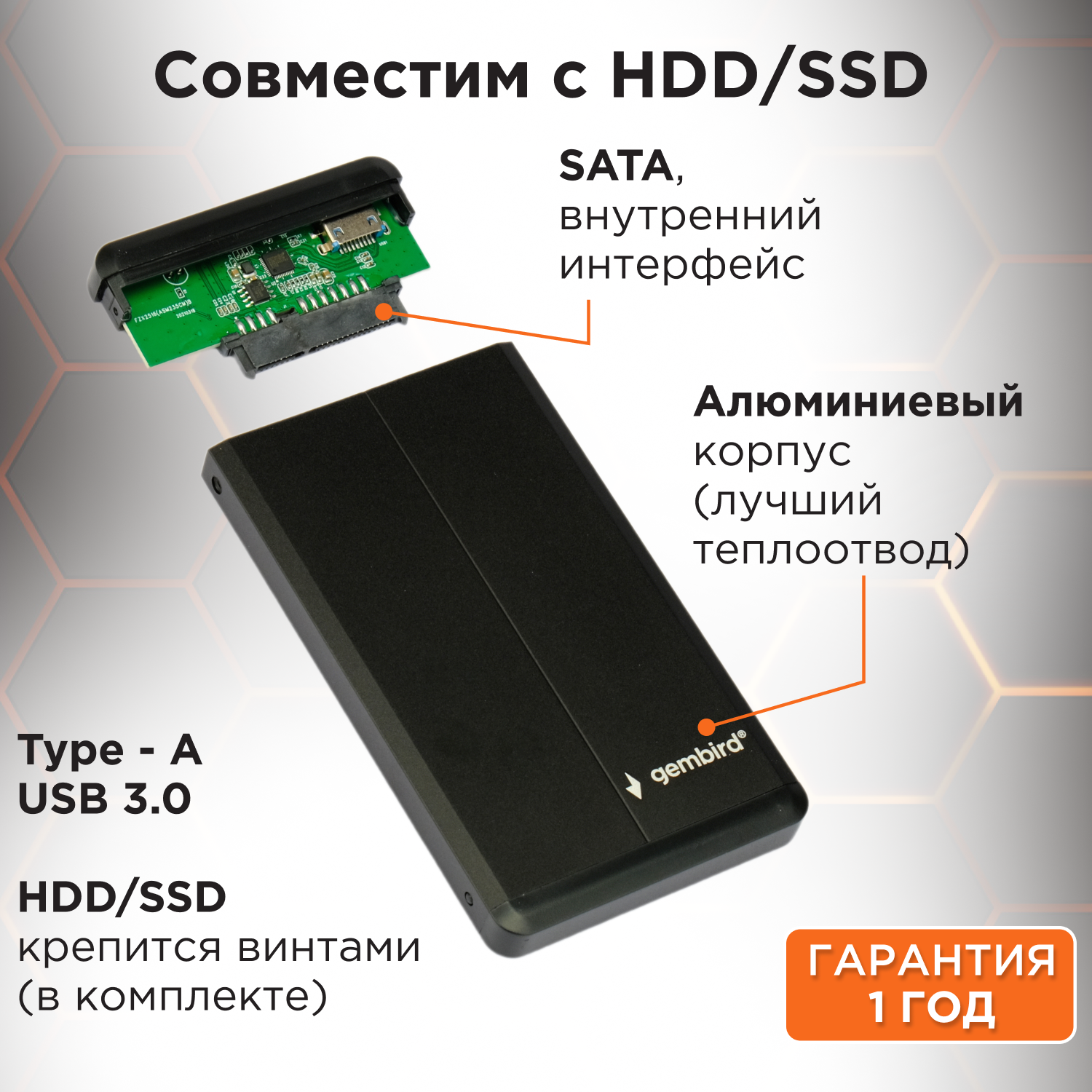Корпус для SSD-HDD Gembird EE2-U3S-2 2.5 SATA до 1 Тб, алюминиевый, чёрный usb 3.0 794 ₽ Подробнее