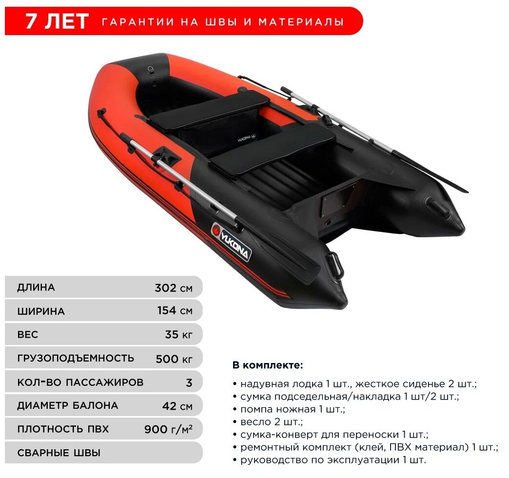 Надувная лодка Надувная лодка ПВХ YUKONA 300 НДНД под мотор, красно-черный