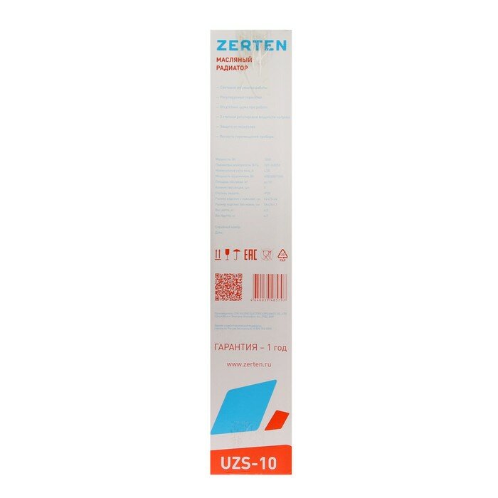 Обогреватель Zerten Uzs-10, масляный, 1000 Вт, 5 секций, до 10м2, белый Zerten 7351897 .