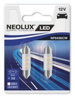 Лампа автомобильная Neolux Cold White C5W (SV8.5-8) 36мм LED 6000К 12V, бл. 2шт, NF6436CW-02B