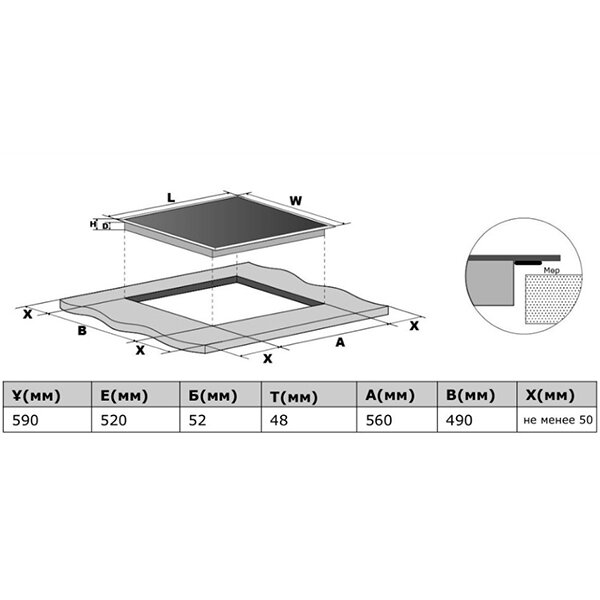 | Размеры для встраивания (ШхГ) | 550x485 мм |