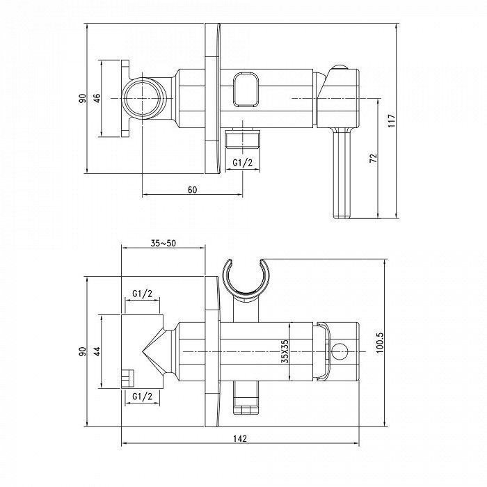 Лучшие цены. Встраиваемый смеситель для биде, в комплекте с гигиеническим душем внутренняя и внешняя часть смеситель в комплектегигиенический душинтегрированный держатель для душауниверсальны крючок для полотенца (монтаж с любой стороны). Магазины в вашем городе.