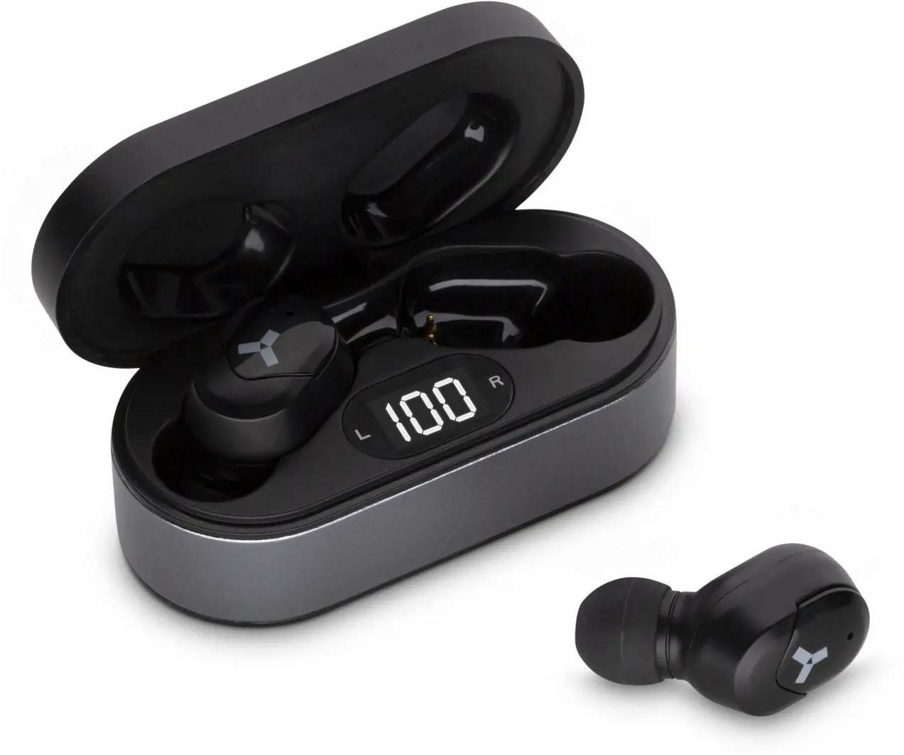 Лучшие цены. Бюджетные TWS наушники в компактном металлическом кейсе с дисплеем TWS-наушники в НЕ по-детски компактном кейсе. Об их весе и размере можно слагать легенды — кейс весит всего 33 грамма и имеет длину чуть меньше 7 сантиметров. Встроенный дисплей показывает оставшийся заряд футляра. Корпус сделан из прочного металла, а значит, ему не страшны царапины, потёртости и другие повреждения. Носить его можно хоть в кармане, хоть в сумке без дополнительных чехлов и защит. Магазины в вашем городе.