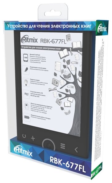 Лучшие цены. Лёгкая, компактная электронная книга с экраном E-Ink Pearl и мягкой подсветкой. Ritmix RBK-677FL станет идеальной находкой для тех, кто предпочитает активный образ жизни. Благодаря малому весу и размеру ридер не займет много места, что позволяет брать его с собой куда угодно. Модель имеет самый современный экран E-ink Pearl, который визуально не отличаются от обычной бумаги, не бликует на солнце и потребляет очень мало энергии. Магазины в вашем городе.