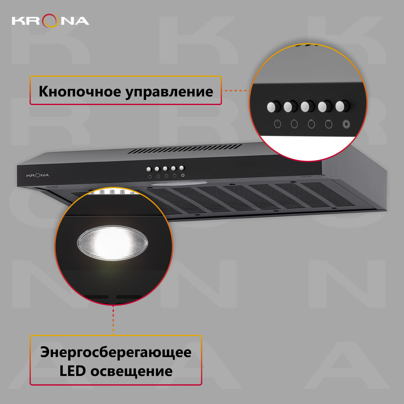 Вытяжка козырьковая Krona Ermina 600 черный управление: кнопочное (1 мотор)