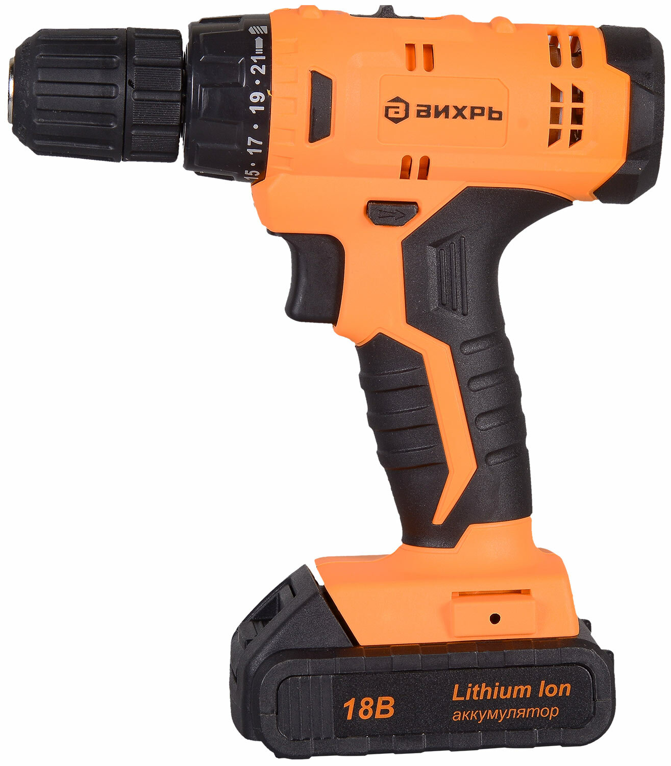 Лучшие цены. Дрель-шуруповерт аккумуляторная вихрь ДА-18Л-2КА незаменимый помощник мастера в ремонте или строительстве. Прибор аккуратно сверлит отверстия на поверхностях из дерева и металла, а также накрепко закручивает шурупы. В комплект к дрели-шуруповерту поставляется удобный кейс, в котором можно хранить инструмент, зарядку к нему и другие рабочие детали. Не требует подключения к сети, что позволяет использовать ее в помещениях, где нет доступа к системе электропитания. Магазины в вашем городе.
