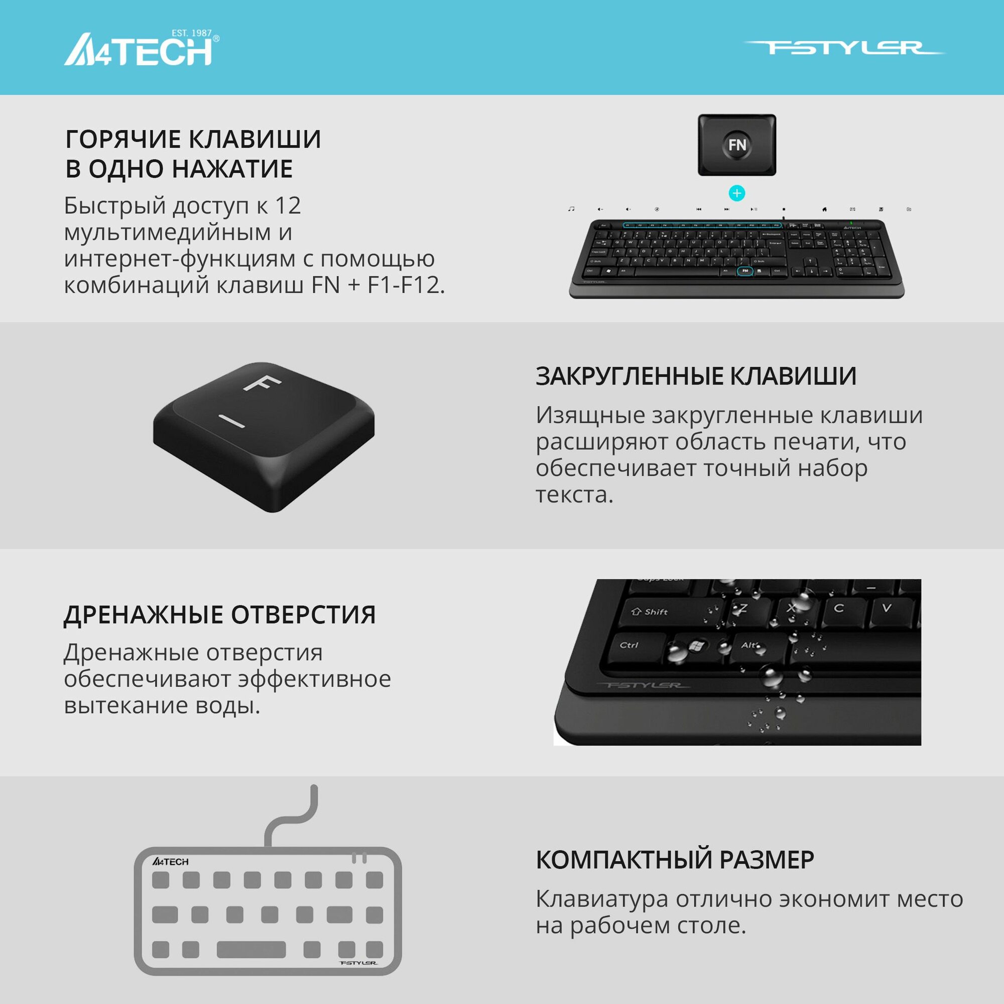 Клавиатура A4 Fstyler FK11 серый USB slim . 1 472 ₽ Подробнее