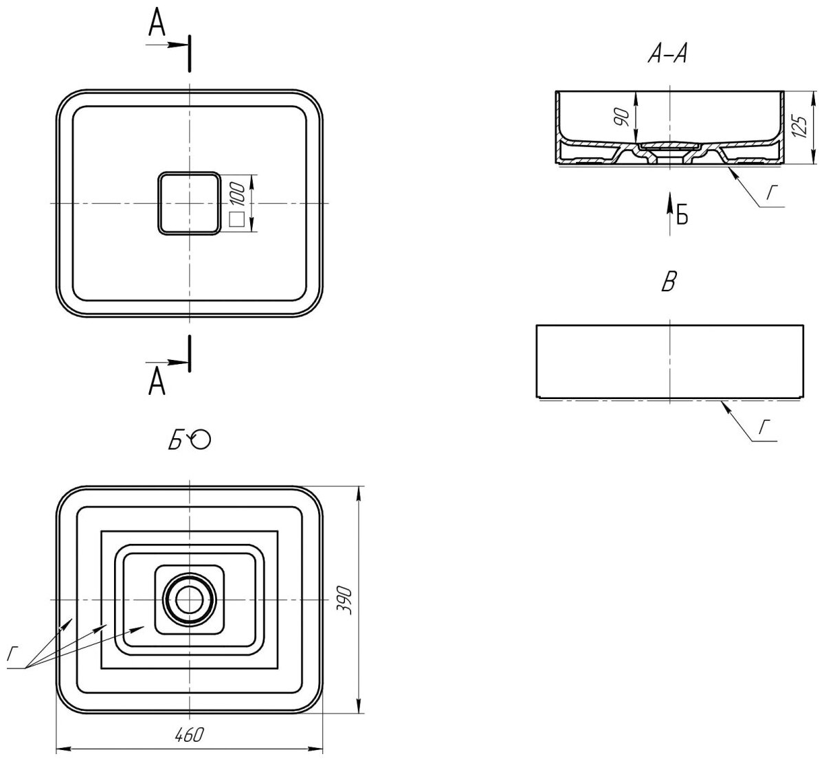 Джой, накладной умывальник для установки на столешнице, керамический, с заглушкой сливного отверстия, 46х39х12 см