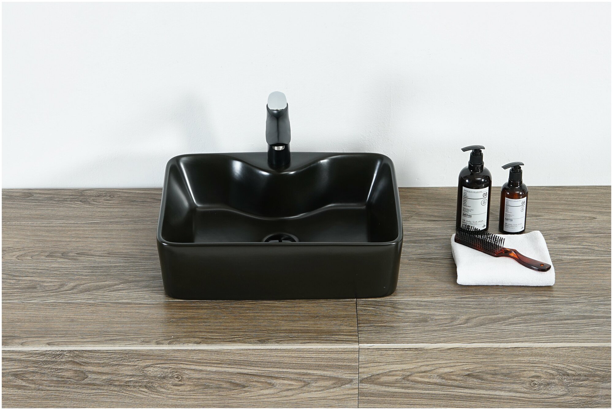 Лучшие цены. Мода на накладные раковины в самом разгаре! И даже при скромных размерах ванной комнаты легко найти подходящее решение. Черная накладная раковина Orange B01-475MB несмотря на небольшой размер 48х37х13,5 см удобна в использовании благодаря нестандартной прямоугольной форме. Визуально она также будет занимать совсем немного места, но внутри окажется гораздо больше своих круглых и овальных аналогов. Магазины в вашем городе.