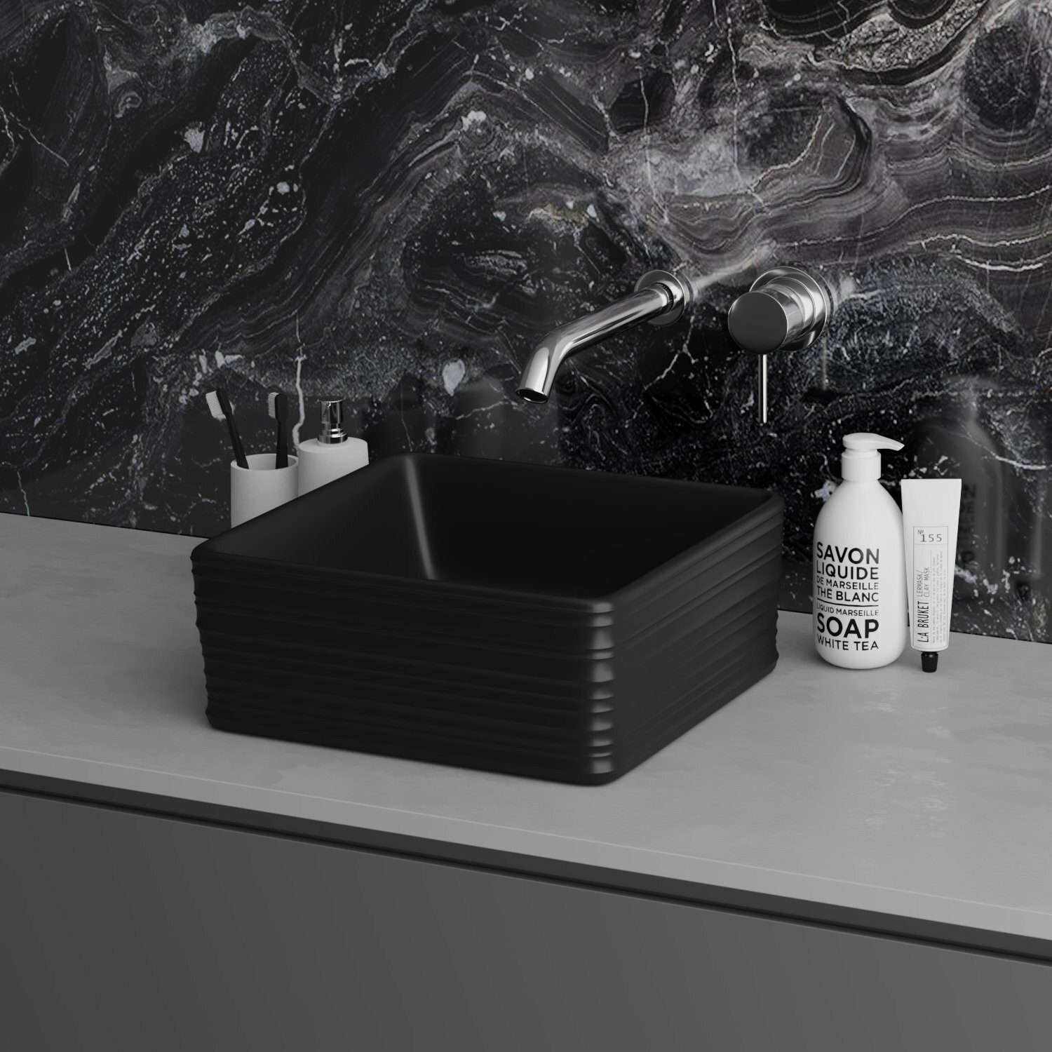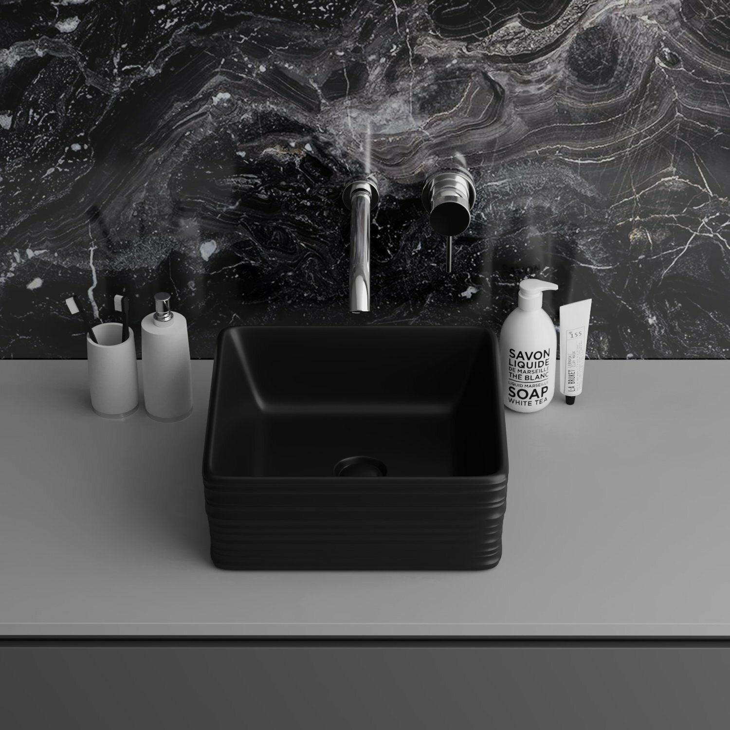 Раковина Grossman GR-3026BM (39,5x39,5x15) чёрная матовая накладная прямоугольная