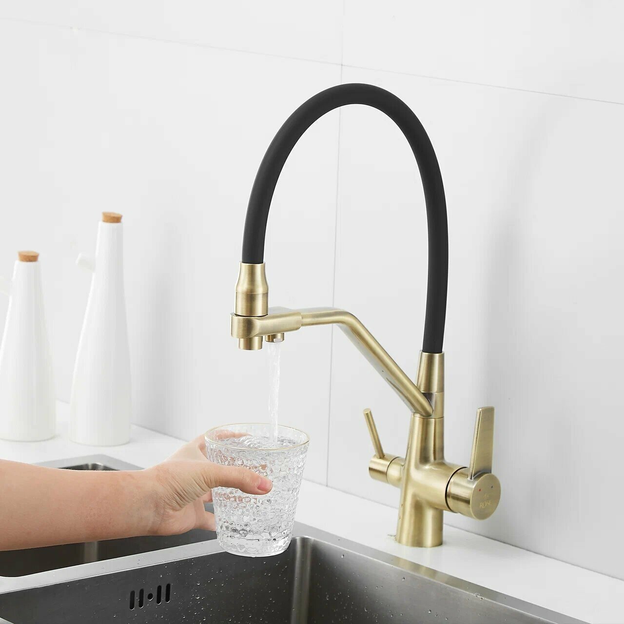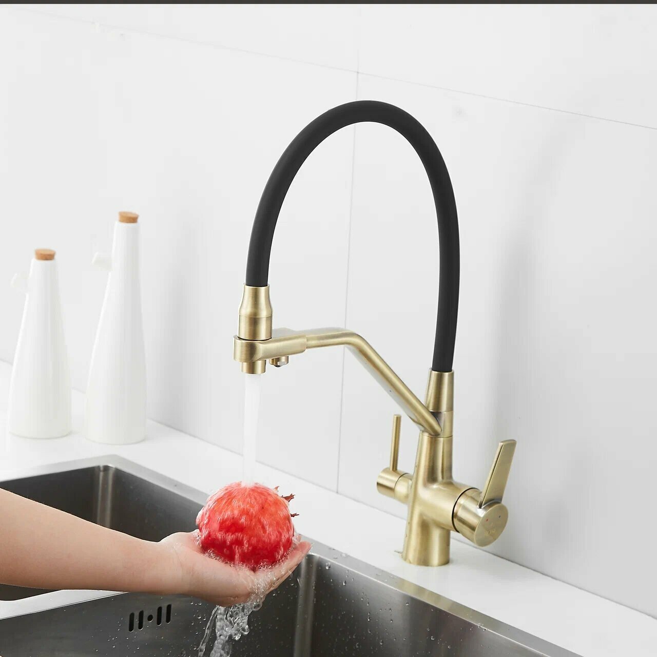 Смеситель для кухни с гибким изливом и подключением фильтра для воды Rose R558E, золото