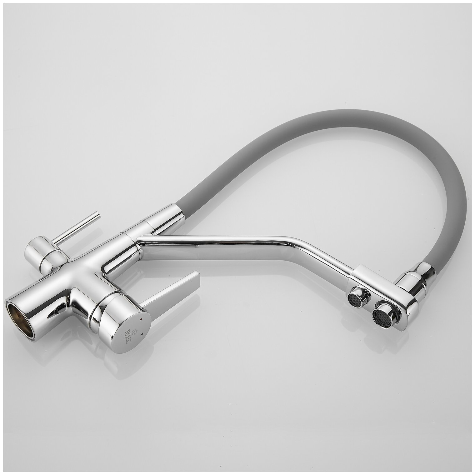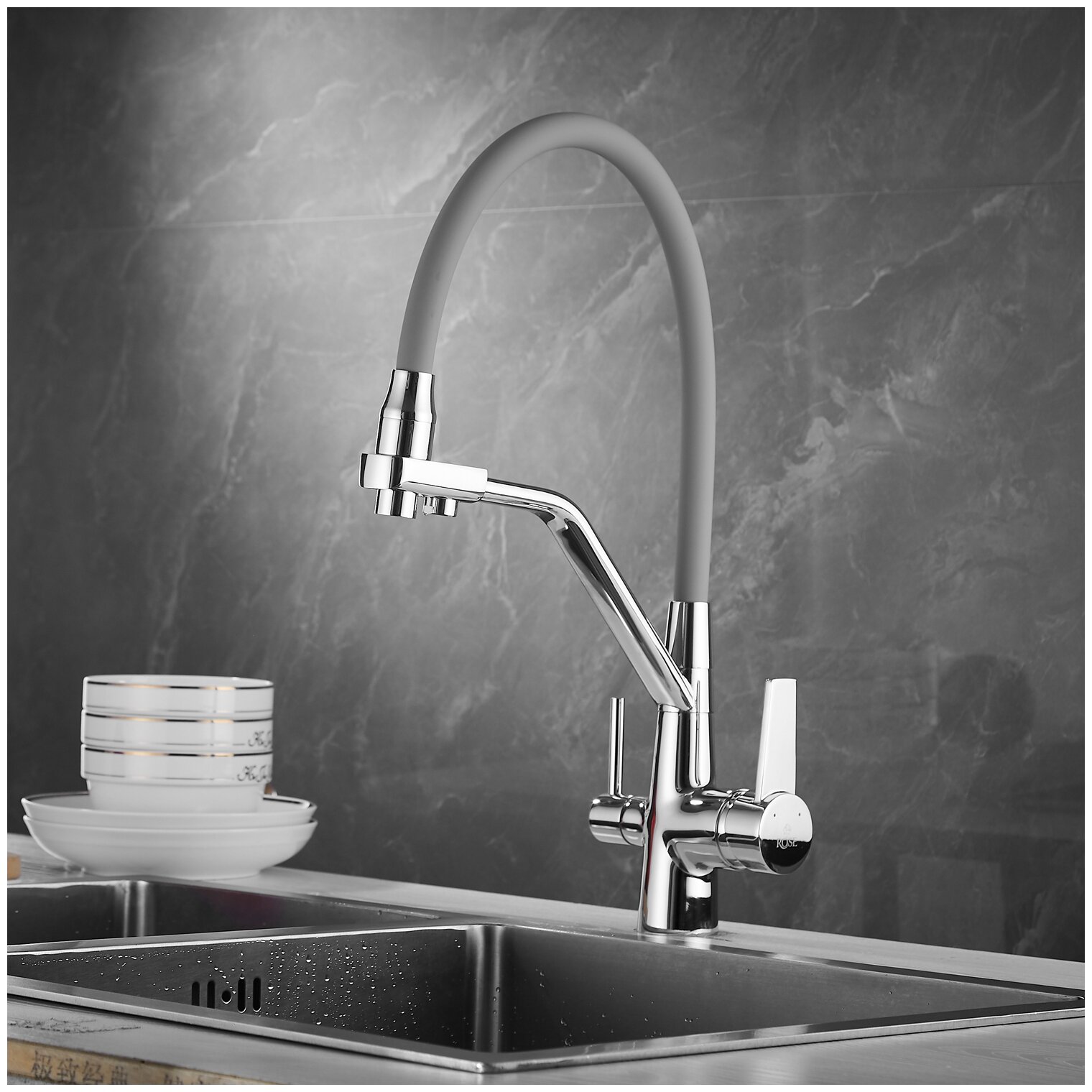 Смеситель для кухни с гибким изливом и поключением фильтра для воды Rose R558, хром