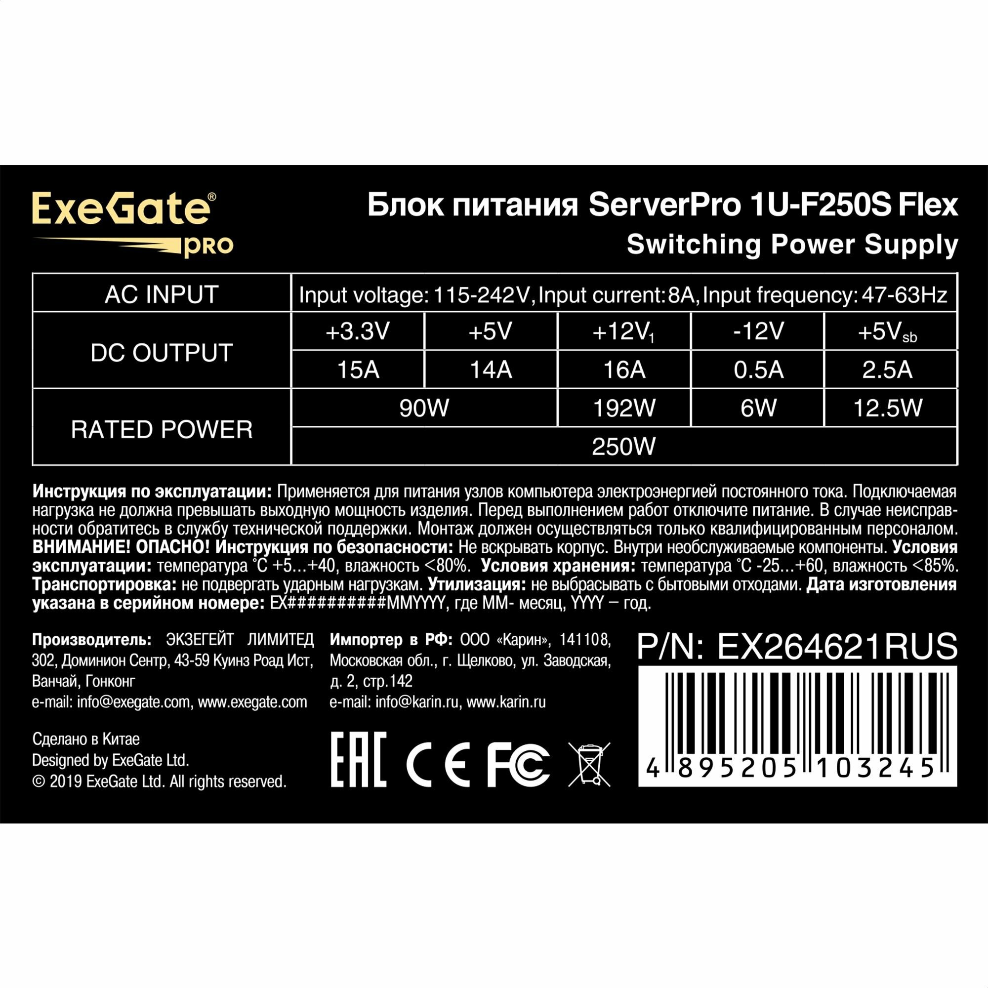 ExeGate ServerPRO-1U-F250S Блок питания EX264621RUS