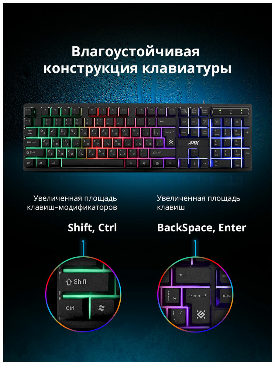 Клавиатура Проводная игровая клавиатура Defender Arx GK-196L RU радужная подсветка