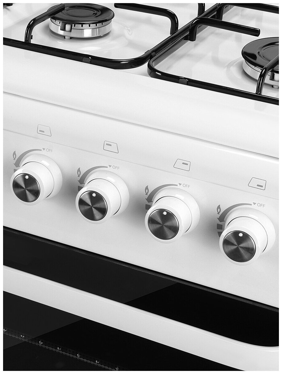 Плита газовая Hyundai RGG213 белый, металлическая крышка, решетка эмаль