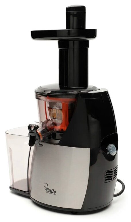 Лучшие цены. Соковыжималка VIATTO VA-SJ2013 шнековая, вертикальная, скорость вращения шнека 65 об/мин, загрузочное отверстие 40 мм, объем чаши общий/полезный 0,5/0,25л, материал корпуса и рабочего узла - нерж. сталь/пластмасса, в комплекте контейнер для сока и контейнер для отходов. Магазины в вашем городе.