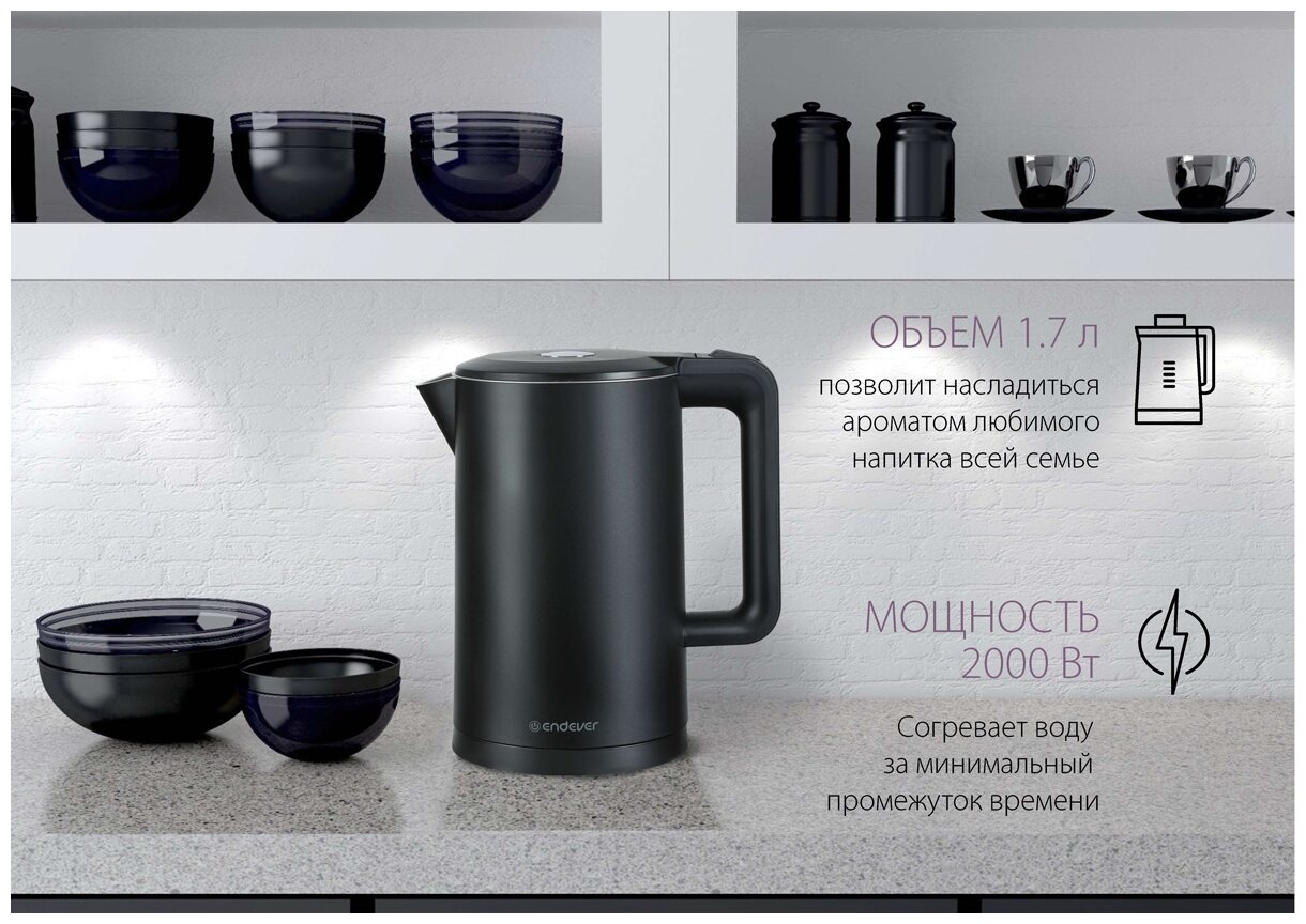 Лучшие цены. Чайник электрический Endever Skyline KR-236S, черный. Магазины в вашем городе.