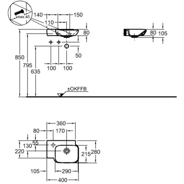 Раковина Geberit myDay с отверстием с левой стороны 400х280 мм 125440600 30 737 ₽ Подробнее