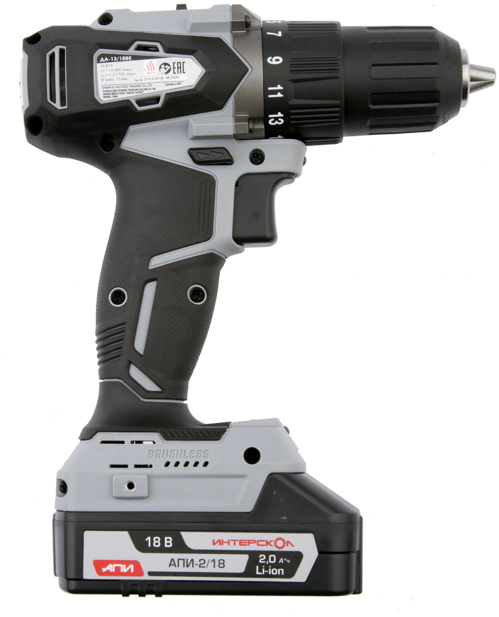 ИНТЕРСКОЛ Аккумуляторная бесщеточная дрель-шуруповерт ДА-13/18ВК АПИ, Li-ion, кейс, 2 аккум. 2Ач, ЗУ (575.2.2.70)